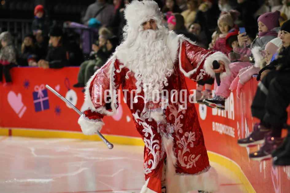 Гостей праздника ждала насыщенная праздничная концертная программа, угощение горячими напитками, спортивные соревнования – «Забег в валенках» и весёлая эстафета на катке, а также новогодняя лотерея, выступление фигуристов, ярмарка новогодних подарков и фотосессия с Дедом Морозом и Снегурочкой.