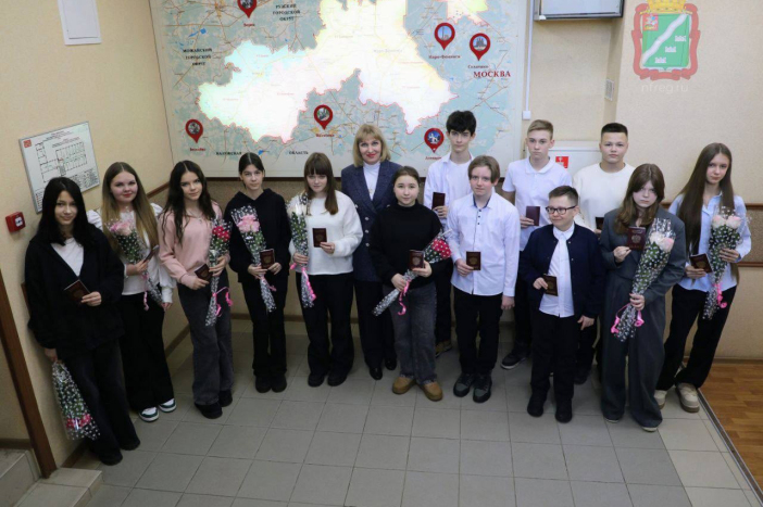 Глава ЗАТО г.о. Молодёжный Андрей Михайлов совместно с местными депутатами и волонтёрами Подмосковья в торжественной обстановке вручил первые паспорта РФ юным жительницам