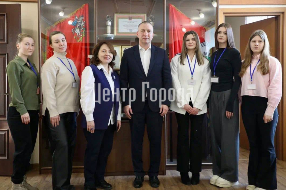 Глава Наро-Фоминского городского округа Роман Шамнэ встретился с ребятами из наро-фоминской школы № 5 – это будущие журналисты, которые выпускают школьную газету.