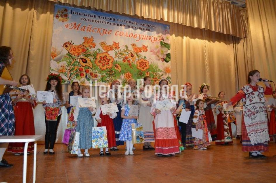 20 мая в ДК «Восток» с.п. Ташировское прошел 1-ый Открытый детский фестиваль-конкурс сольного традиционного пения «Майские соловушки», участие в котором приняли юные артисты в возрасте от 5 до 14 лет из семи поселений района. Обладательницей Гран-при фестиваля стала учащаяся фольклорного отделения ЦШИ «Гармония» Софья Кошкош, а обладателями наград в различных номинациях стали представители Детского центра «Сёма» г. Апрелевка, клуба семейных традиций «Матрёшка», Верейской школы искусств, ДКС «Восток», ДКС «Головково», ДК «Веселёво», ДКиС «Архангельское». Специальные призы от предпринимательского сообщества района были вручены педагогам, концертмейстерам и исполнителям из с.п. Веселёвское и Наро-Фоминска.